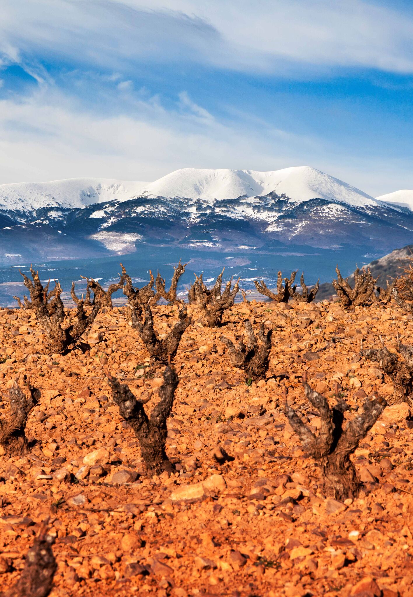 Am Fuss des majestätischen Moncayo – diesem stillen Riesen des Iberischen Gebirges – wachsen seit Jahrzehnten hundert Hektar „Garnacha de Monte“. Das kühle, trockene Klima, der kraftvolle Wind El Cierzo und die kargen Bedingungen formen Trauben, die mit jeder Saison um ihr Überleben kämpfen – und gerade deshalb unvergessliche Aromen entwickeln.